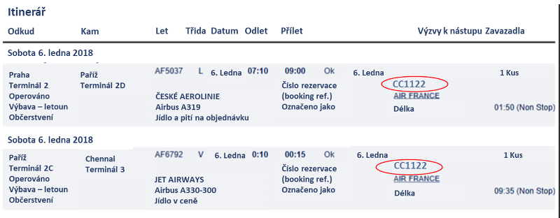 - jsou všechny lety pod jednou rezervací