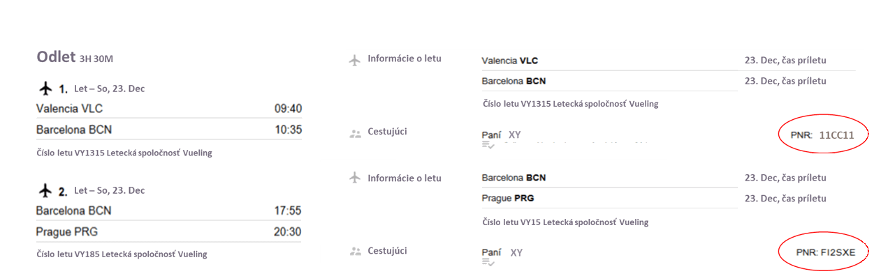 Kvôli tomu, že každý let má svoju rezerváciu, nazerá sa na lety ako na dva samostatné lety. Let A oneskorený o 1 hod., nárok nevznikol. Let B odletel na čas a oneskorený nebol, nárok tiež nevznikol.